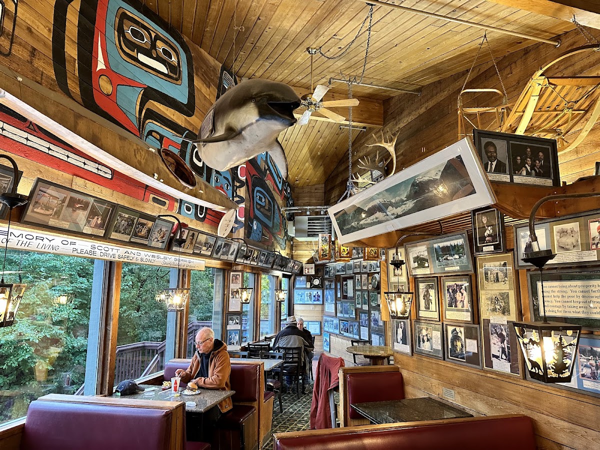 Arctic Roadrunner is an Alaskan Landmark. Located on The Old Seward highway on the beautiful bank of Campbell Creek. There is plenty of outdoor eating to enjoy thar beautiful 65 degree weather. Indoor is iconic with picture and replica scatter throughout. This place is a fast food joint, there's no other way to describe it. But it's a great fast food restaurant. They cook your food while you wait so it take a little time. And the food is really good. Sorry no food pics or table was rarher crowded and our friend and use were playing a card game. This place moves the people through because a lot of people come here. It's an Anchorage icon. Do yourself a favor and enjoy it. Will I go back? Hell yes and you will too.